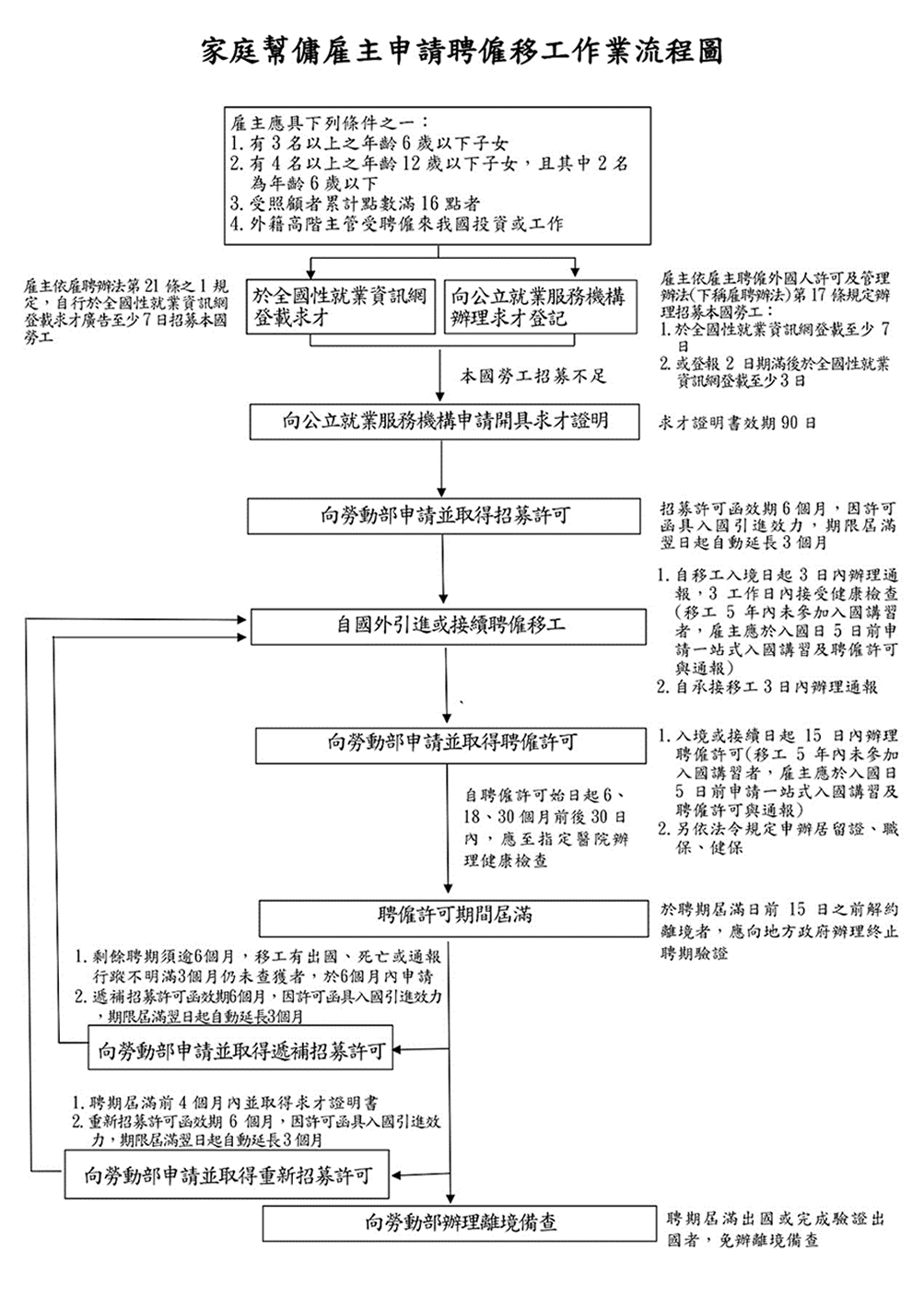註:外國人入國後應參加勞動部移工一站式服務之入國講習,並取得完訓證明。 但曾於5年內完成講習者得免參加。