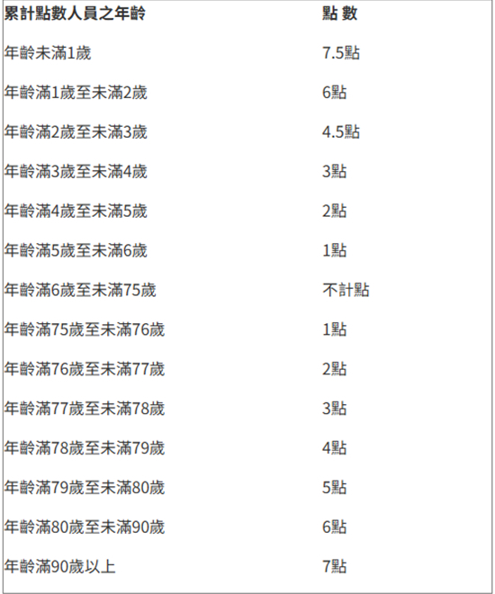依下表計算家戶成員,累計點數滿16點者。